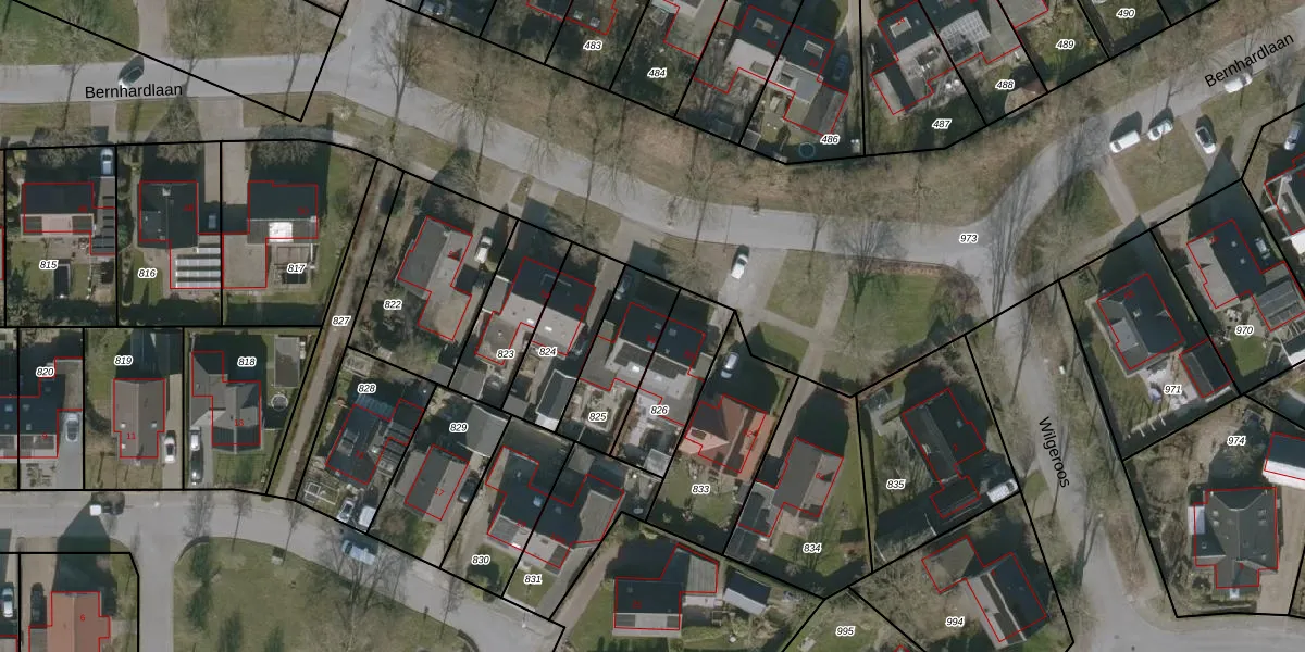 Gebruik de zoekbalk of klik op een perceel voor informatie over de adressen binnen dit perceel.