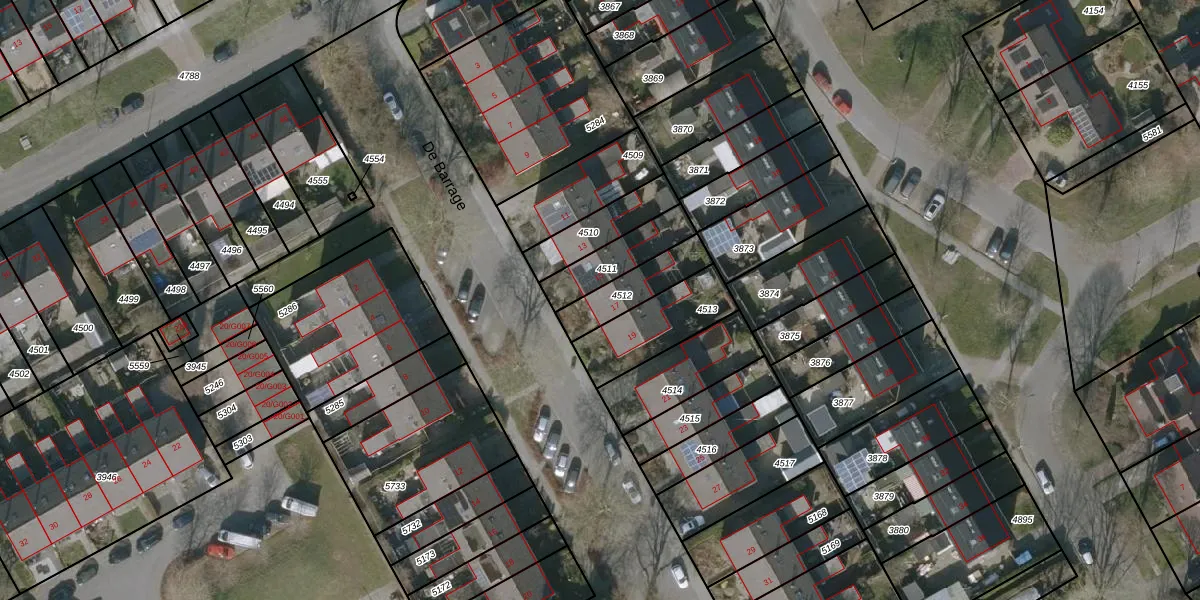 Het perceel waarop De Barrage 17 staat heeft een oppervlakte van 154 m². Dit is een middelgroot perceel. De perceeloppervlakte wordt geregistreerd door het Kadaster. Gedetailleerde informatie over de maten van dit perceel kunt u vinden in het rapport Kadastrale kaart met maatvoering van De Barrage 17.