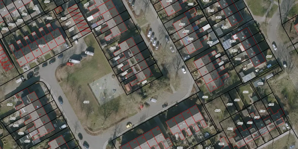Het perceel waarop De Barrage 20 staat heeft een oppervlakte van 260 m². Dit is een middelgroot perceel. De perceeloppervlakte wordt geregistreerd door het Kadaster. Gedetailleerde informatie over de maten van dit perceel kunt u vinden in het rapport Kadastrale kaart met maatvoering van De Barrage 20.
