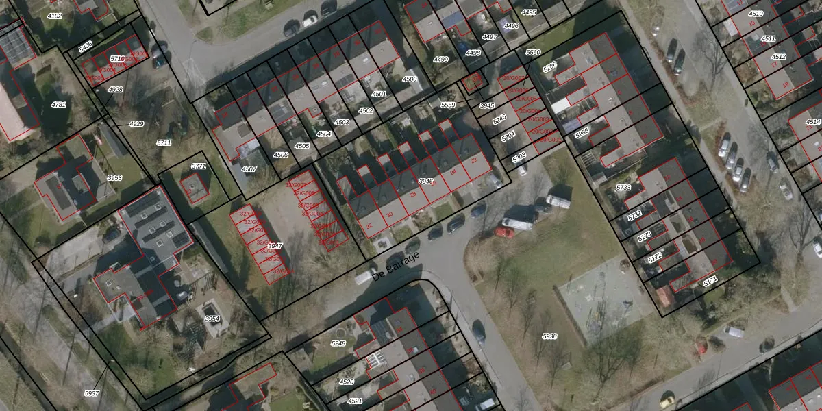Het perceel waarop De Barrage 28 staat heeft een oppervlakte van 1119 m². Dit is een zeer groot perceel. De perceeloppervlakte wordt geregistreerd door het Kadaster. Gedetailleerde informatie over de maten van dit perceel kunt u vinden in het rapport Kadastrale kaart met maatvoering van De Barrage 28.
