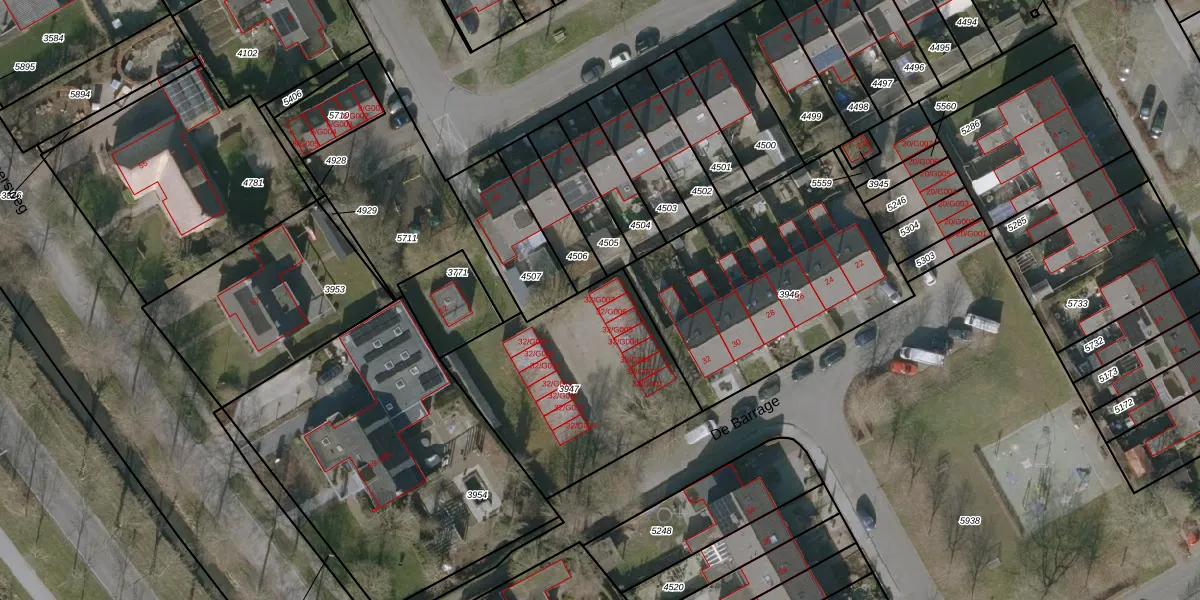 De Barrage 32-G007 is gelegen op kadastraal perceel BTP00A3947. Deze kadastrale aanduiding is uniek en wordt gebruikt door het Kadaster om eigendomsrechten en andere zakelijke rechten vast te leggen. Het perceel maakt onderdeel uit van de kadastrale gemeente Buitenpost.