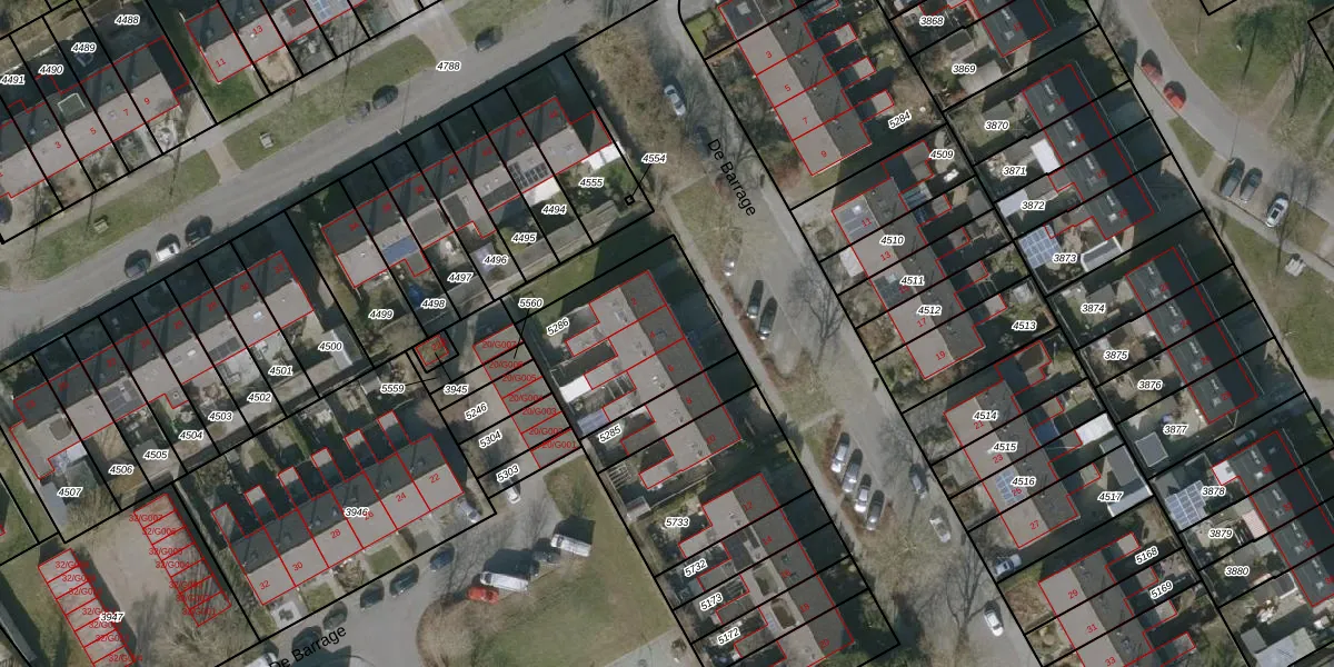 Het perceel waarop De Barrage 4 staat heeft een oppervlakte van 550 m². Dit is een groot perceel. De perceeloppervlakte wordt geregistreerd door het Kadaster. Gedetailleerde informatie over de maten van dit perceel kunt u vinden in het rapport Kadastrale kaart met maatvoering van De Barrage 4.