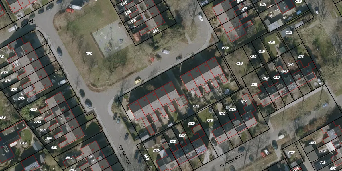 Het perceel waarop De Barrage 45 staat heeft een oppervlakte van 1882 m². Dit is een zeer groot perceel. De perceeloppervlakte wordt geregistreerd door het Kadaster. Gedetailleerde informatie over de maten van dit perceel kunt u vinden in het rapport Kadastrale kaart met maatvoering van De Barrage 45.