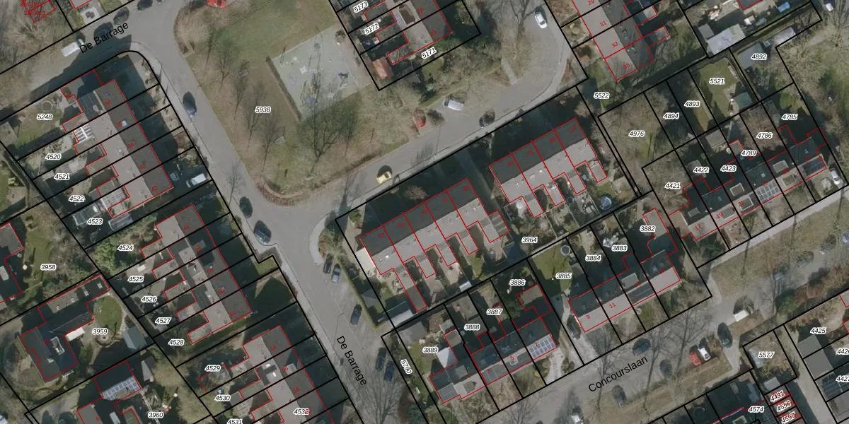 Het perceel waarop De Barrage 49 staat heeft een oppervlakte van 1882 m². Dit is een zeer groot perceel. De perceeloppervlakte wordt geregistreerd door het Kadaster. Gedetailleerde informatie over de maten van dit perceel kunt u vinden in het rapport Kadastrale kaart met maatvoering van De Barrage 49.