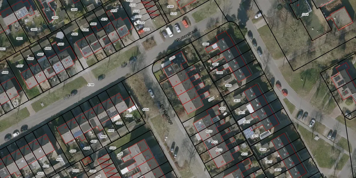 Het perceel waarop De Barrage 5 staat heeft een oppervlakte van 696 m². Dit is een groot perceel. De perceeloppervlakte wordt geregistreerd door het Kadaster. Gedetailleerde informatie over de maten van dit perceel kunt u vinden in het rapport Kadastrale kaart met maatvoering van De Barrage 5.
