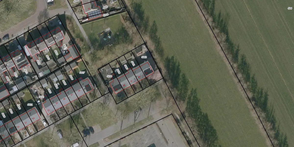Het perceel waarop het adres ligt is BTP00-A-5442. De afkorting 'BTP00' staat voor kadastrale gemeente Buitenpost. Het perceel is 285 m² groot. Dat is kleiner dan de gemiddelde perceeloppervlakte in Buitenpost, dat op 4624,1 m² ligt. De grootste perceeloppervlakte in de kadastrale gemeente is 25,0 ha. De kleinste oppervlakte bedraagt 1 m². Op het perceel bevinden zich geen andere adressen. De huidige grenzen van het perceel zijn digitaal in de Basisregistratie Kadaster (BRK) geregistreerd op 08-04-2003.