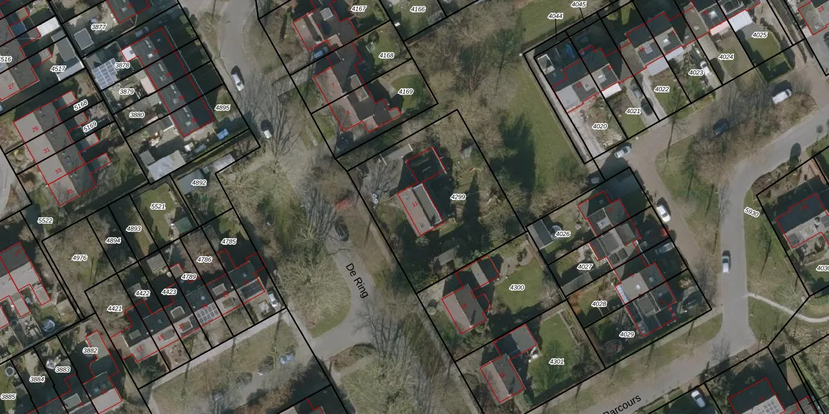 Het perceel waarop De Ring 11 staat heeft een oppervlakte van 1040 m². Dit is een zeer groot perceel. De perceeloppervlakte wordt geregistreerd door het Kadaster. Gedetailleerde informatie over de maten van dit perceel kunt u vinden in het rapport Kadastrale kaart met maatvoering van De Ring 11.