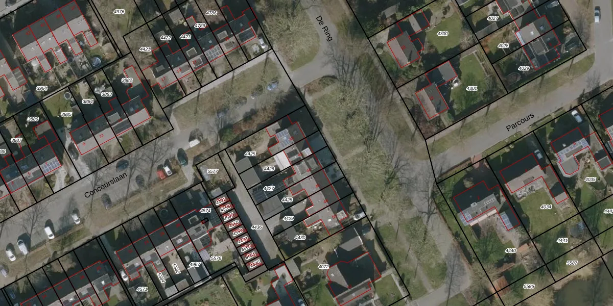 Het perceel waarop De Ring 42 staat heeft een oppervlakte van 173 m². Dit is een middelgroot perceel. De perceeloppervlakte wordt geregistreerd door het Kadaster. Gedetailleerde informatie over de maten van dit perceel kunt u vinden in het rapport Kadastrale kaart met maatvoering van De Ring 42.