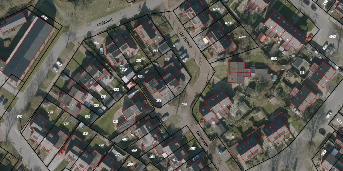Het perceel waarop De Roede 17 staat heeft een oppervlakte van 326 m². Dit is een groot perceel. De perceeloppervlakte wordt geregistreerd door het Kadaster. Gedetailleerde informatie over de maten van dit perceel kunt u vinden in het rapport Kadastrale kaart met maatvoering van De Roede 17.