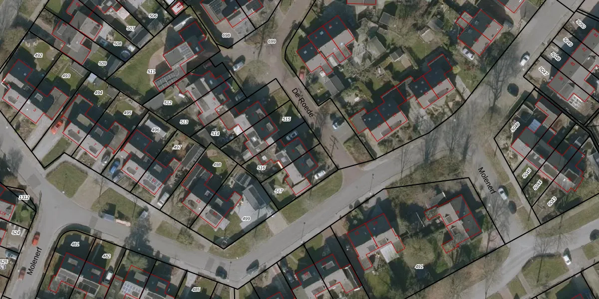 Gebruik de zoekbalk of klik op een perceel voor informatie over de adressen binnen dit perceel.