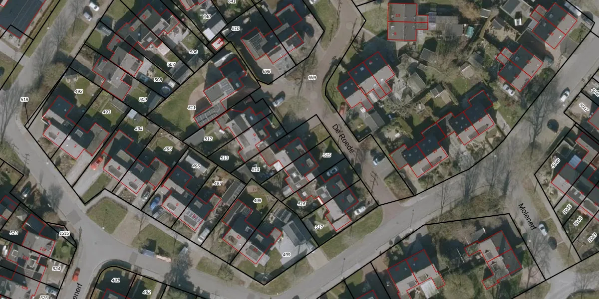 Het perceel waarop De Roede 7 staat heeft een oppervlakte van 282 m². Dit is een middelgroot perceel. De perceeloppervlakte wordt geregistreerd door het Kadaster. Gedetailleerde informatie over de maten van dit perceel kunt u vinden in het rapport Kadastrale kaart met maatvoering van De Roede 7.