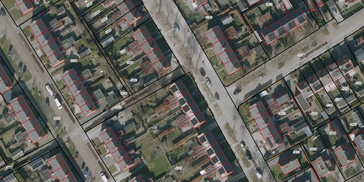 Het perceel waarop de Schepperstraat 50 staat heeft een oppervlakte van 6130 m². Dit is een zeer groot perceel. De perceeloppervlakte wordt geregistreerd door het Kadaster. Gedetailleerde informatie over de maten van dit perceel kunt u vinden in het rapport Kadastrale kaart met maatvoering van de Schepperstraat 50.