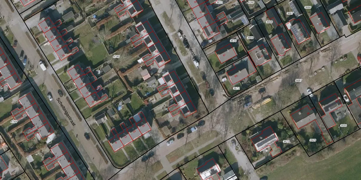 Het perceel waarop de Schepperstraat 68 staat heeft een oppervlakte van 6130 m². Dit is een zeer groot perceel. De perceeloppervlakte wordt geregistreerd door het Kadaster. Gedetailleerde informatie over de maten van dit perceel kunt u vinden in het rapport Kadastrale kaart met maatvoering van de Schepperstraat 68.