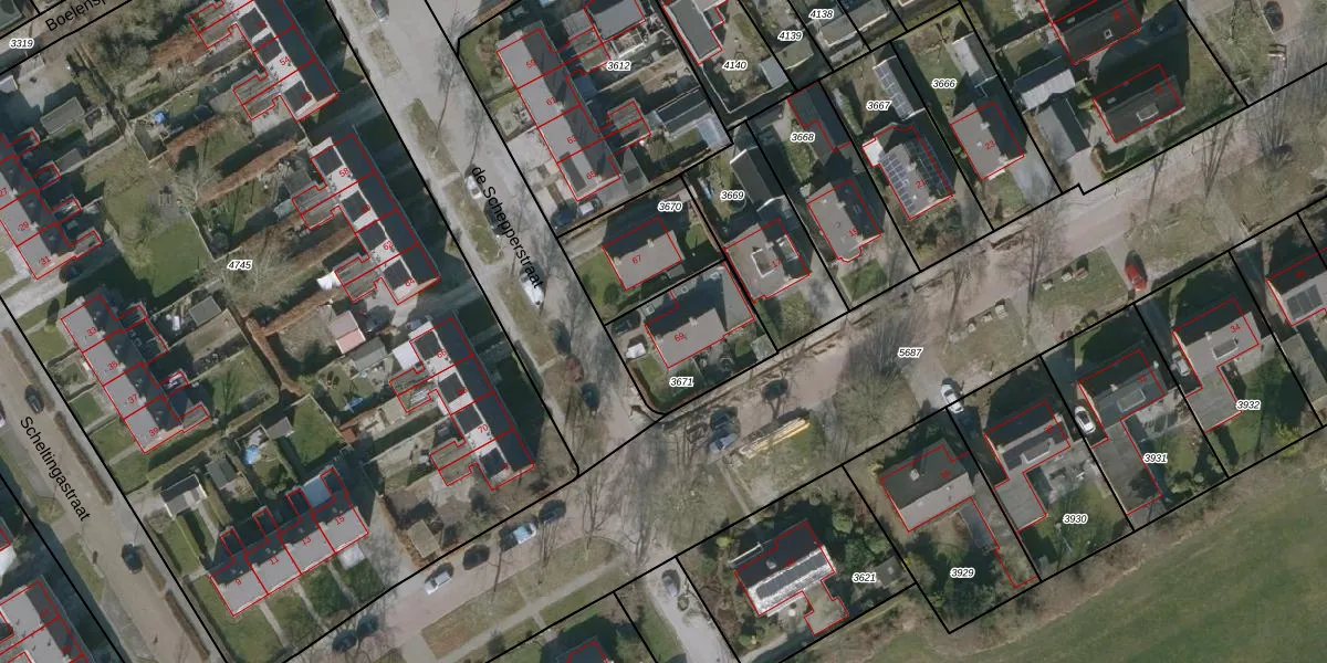 Het perceel waarop de Schepperstraat 69 staat heeft een oppervlakte van 338 m². Dit is een groot perceel. De perceeloppervlakte wordt geregistreerd door het Kadaster. Gedetailleerde informatie over de maten van dit perceel kunt u vinden in het rapport Kadastrale kaart met maatvoering van de Schepperstraat 69.