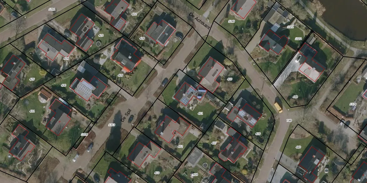 Het perceel waarop De Spil 3 staat heeft een oppervlakte van 640 m². Dit is een groot perceel. De perceeloppervlakte wordt geregistreerd door het Kadaster. Gedetailleerde informatie over de maten van dit perceel kunt u vinden in het rapport Kadastrale kaart met maatvoering van De Spil 3.