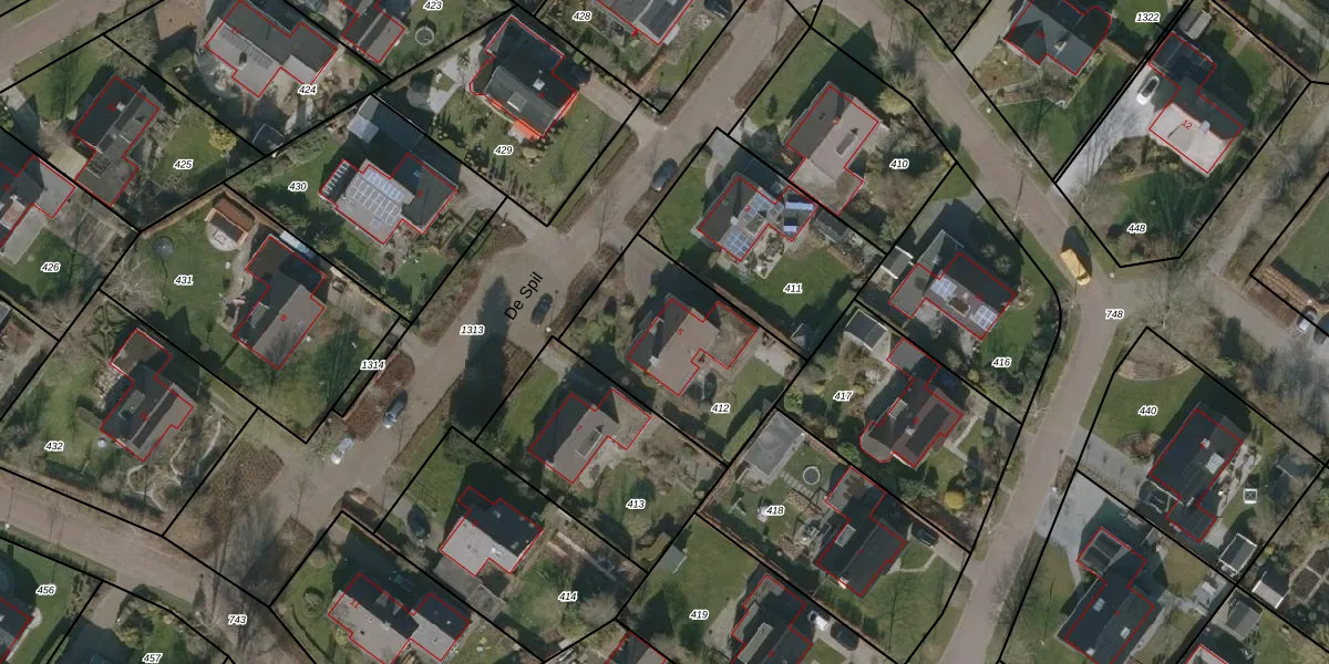 Het perceel waarop De Spil 5 staat heeft een oppervlakte van 640 m². Dit is een groot perceel. De perceeloppervlakte wordt geregistreerd door het Kadaster. Gedetailleerde informatie over de maten van dit perceel kunt u vinden in het rapport Kadastrale kaart met maatvoering van De Spil 5.