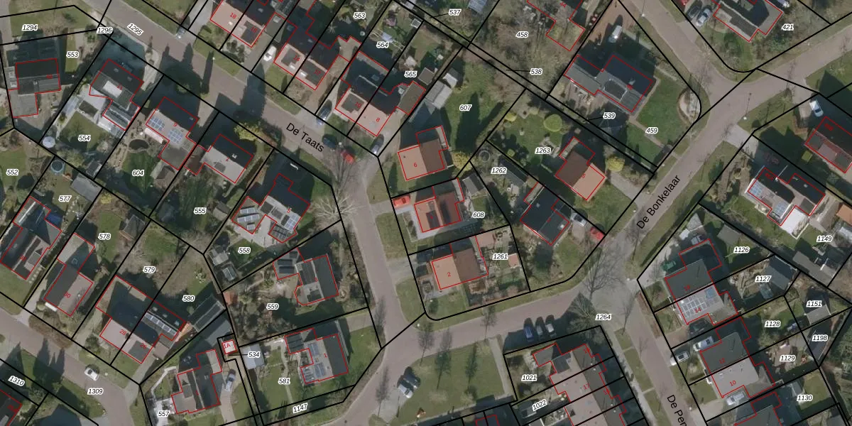 Het perceel waarop De Taats 4 staat heeft een oppervlakte van 331 m². Dit is een groot perceel. De perceeloppervlakte wordt geregistreerd door het Kadaster. Gedetailleerde informatie over de maten van dit perceel kunt u vinden in het rapport Kadastrale kaart met maatvoering van De Taats 4.