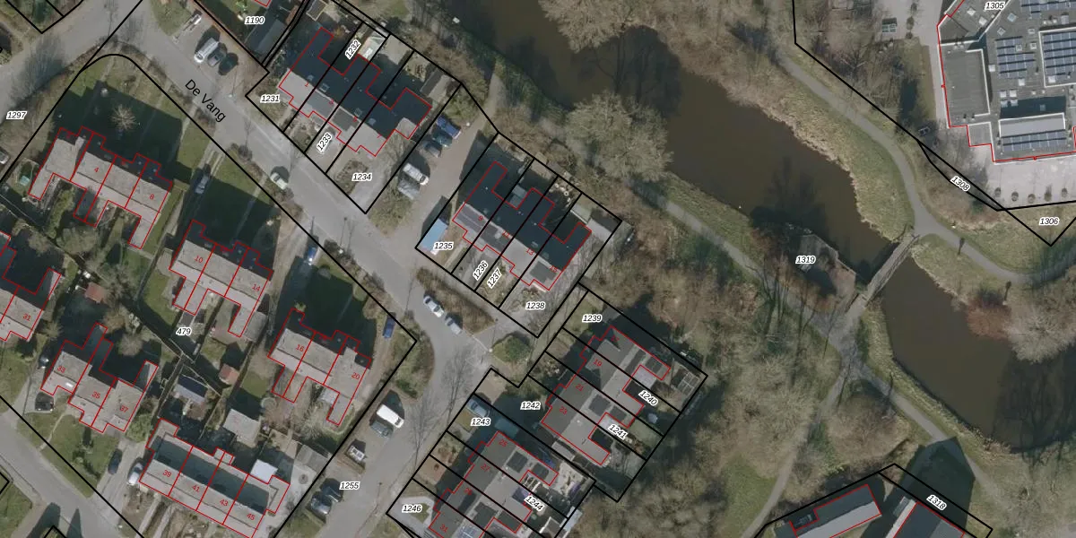 Het perceel waarop De Vang 15 staat heeft een oppervlakte van 242 m². Dit is een middelgroot perceel. De perceeloppervlakte wordt geregistreerd door het Kadaster. Gedetailleerde informatie over de maten van dit perceel kunt u vinden in het rapport Kadastrale kaart met maatvoering van De Vang 15.