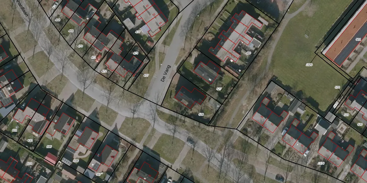 Het perceel waarop De Vang 45 staat heeft een oppervlakte van 499 m². Dit is een groot perceel. De perceeloppervlakte wordt geregistreerd door het Kadaster. Gedetailleerde informatie over de maten van dit perceel kunt u vinden in het rapport Kadastrale kaart met maatvoering van De Vang 45.