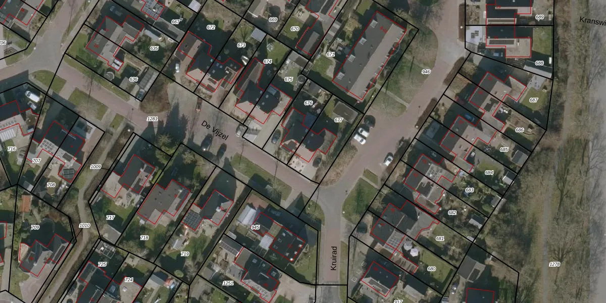Het perceel waarop De Vijzel 11 staat heeft een oppervlakte van 347 m². Dit is een groot perceel. De perceeloppervlakte wordt geregistreerd door het Kadaster. Gedetailleerde informatie over de maten van dit perceel kunt u vinden in het rapport Kadastrale kaart met maatvoering van De Vijzel 11.