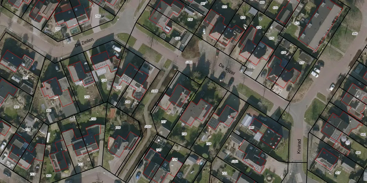 De Vijzel 6 is gelegen op kadastraal perceel BTP00B717. Deze kadastrale aanduiding is uniek en wordt gebruikt door het Kadaster om eigendomsrechten en andere zakelijke rechten vast te leggen. Het perceel maakt onderdeel uit van de kadastrale gemeente Buitenpost.