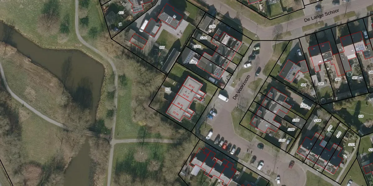 Het perceel waarop De Voorzoom 14 staat heeft een oppervlakte van 751 m². Dit is een groot perceel. De perceeloppervlakte wordt geregistreerd door het Kadaster. Gedetailleerde informatie over de maten van dit perceel kunt u vinden in het rapport Kadastrale kaart met maatvoering van De Voorzoom 14.