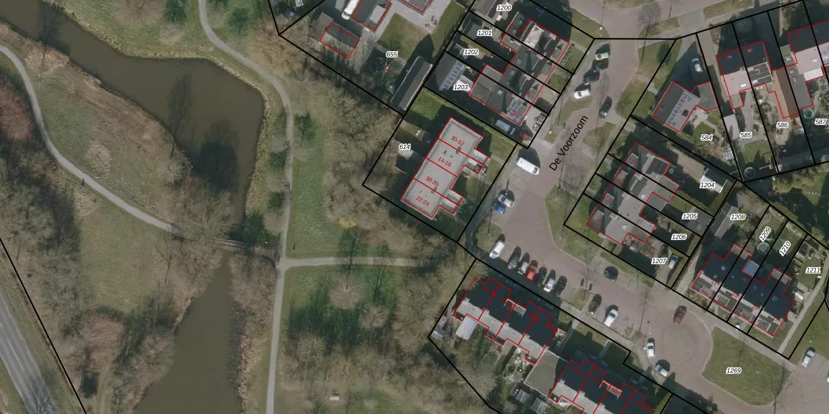 Het perceel waarop De Voorzoom 24 staat heeft een oppervlakte van 751 m². Dit is een groot perceel. De perceeloppervlakte wordt geregistreerd door het Kadaster. Gedetailleerde informatie over de maten van dit perceel kunt u vinden in het rapport Kadastrale kaart met maatvoering van De Voorzoom 24.
