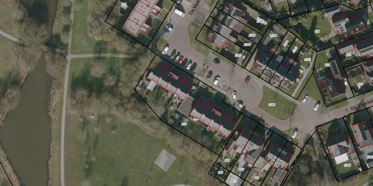 De Voorzoom 40 is gelegen op kadastraal perceel BTP00B616. Deze kadastrale aanduiding is uniek en wordt gebruikt door het Kadaster om eigendomsrechten en andere zakelijke rechten vast te leggen. Het perceel maakt onderdeel uit van de kadastrale gemeente Buitenpost.