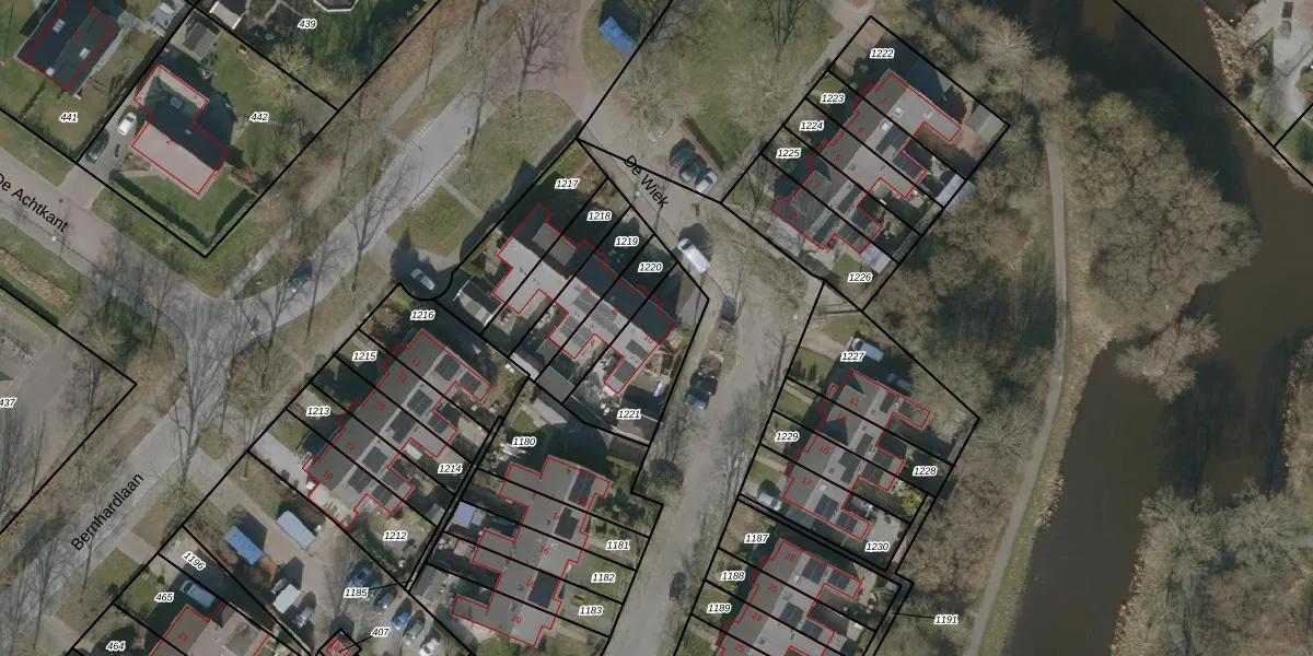 Gebruik de zoekbalk of klik op een perceel voor informatie over de adressen binnen dit perceel.