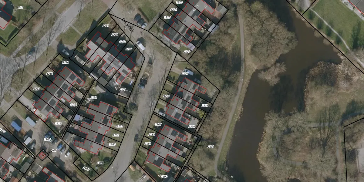 Het perceel waarop De Wiek 13 staat heeft een oppervlakte van 156 m². Dit is een middelgroot perceel. De perceeloppervlakte wordt geregistreerd door het Kadaster. Gedetailleerde informatie over de maten van dit perceel kunt u vinden in het rapport Kadastrale kaart met maatvoering van De Wiek 13.
