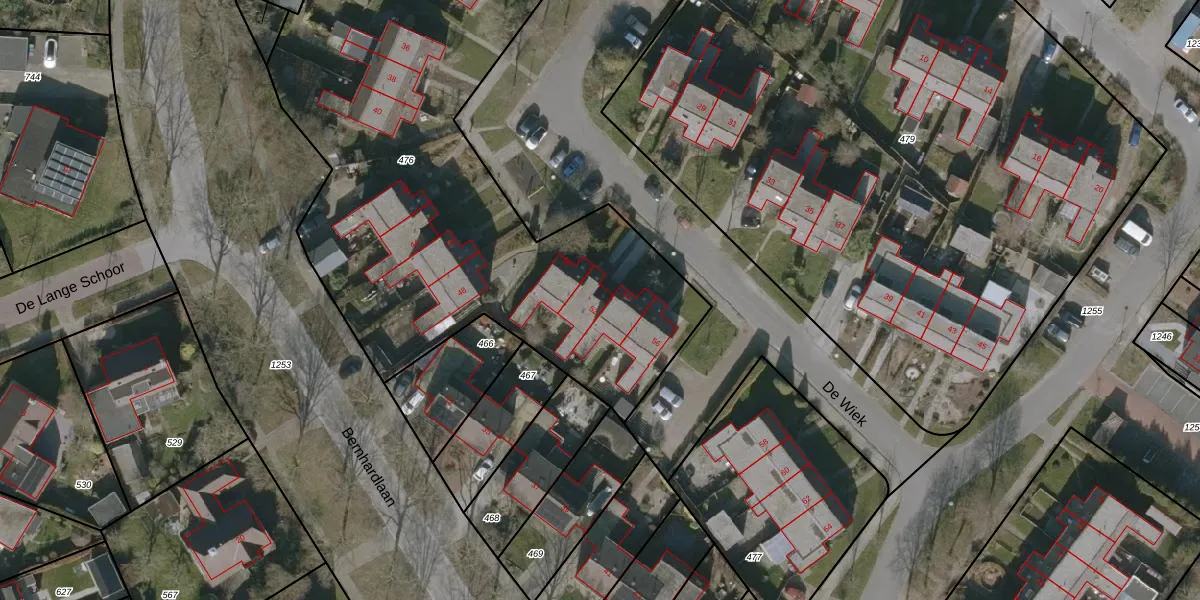 Het perceel waarop De Wiek 52 staat heeft een oppervlakte van 4058 m². Dit is een zeer groot perceel. De perceeloppervlakte wordt geregistreerd door het Kadaster. Gedetailleerde informatie over de maten van dit perceel kunt u vinden in het rapport Kadastrale kaart met maatvoering van De Wiek 52.