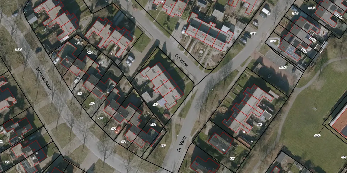 Het perceel waarop De Wiek 62 staat heeft een oppervlakte van 876 m². Dit is een groot perceel. De perceeloppervlakte wordt geregistreerd door het Kadaster. Gedetailleerde informatie over de maten van dit perceel kunt u vinden in het rapport Kadastrale kaart met maatvoering van De Wiek 62.