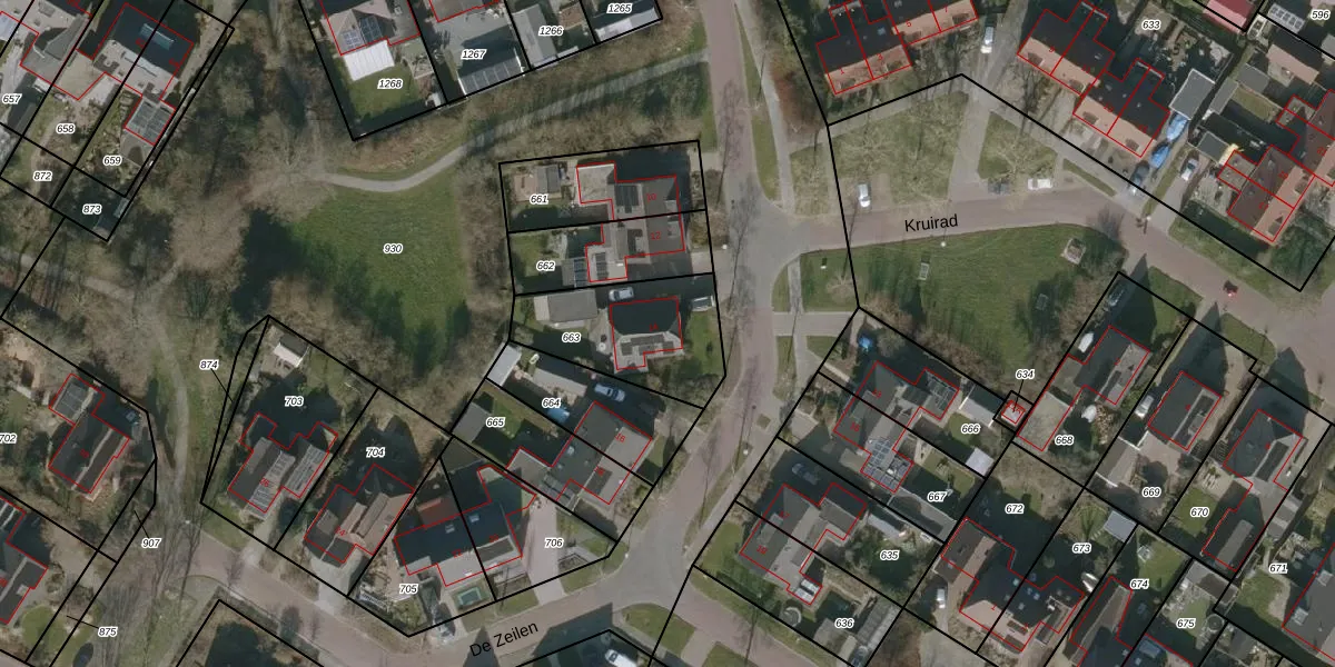 Het perceel waarop De Zeilen 14 staat heeft een oppervlakte van 433 m². Dit is een groot perceel. De perceeloppervlakte wordt geregistreerd door het Kadaster. Gedetailleerde informatie over de maten van dit perceel kunt u vinden in het rapport Kadastrale kaart met maatvoering van De Zeilen 14.