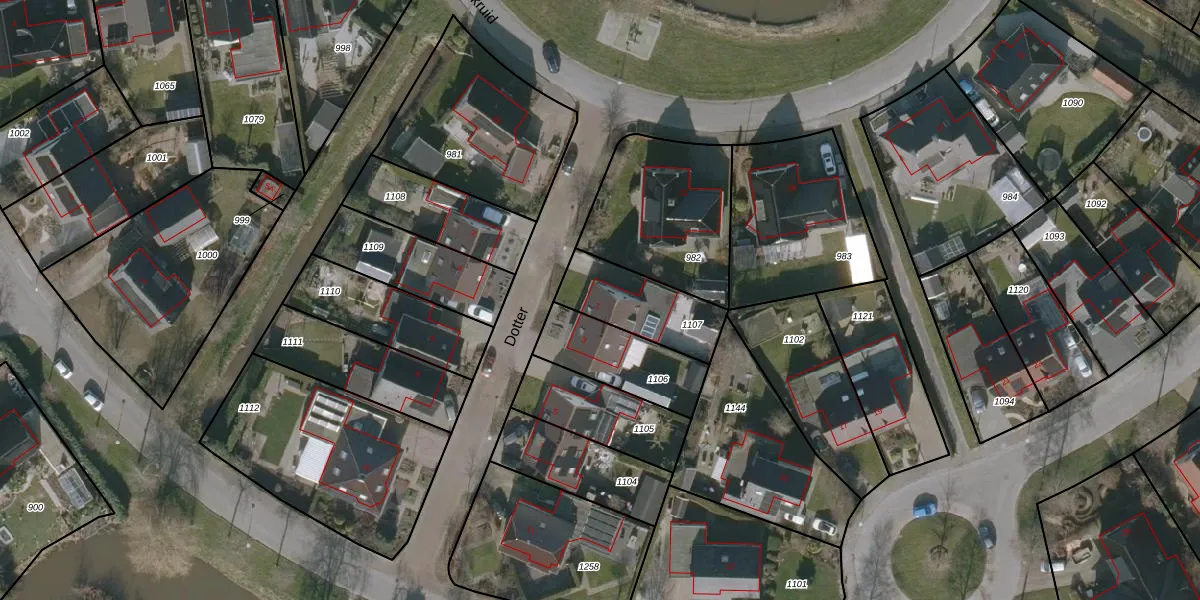 Het perceel waarop Dotter 1 staat heeft een oppervlakte van 267 m². Dit is een middelgroot perceel. De perceeloppervlakte wordt geregistreerd door het Kadaster. Gedetailleerde informatie over de maten van dit perceel kunt u vinden in het rapport Kadastrale kaart met maatvoering van Dotter 1.