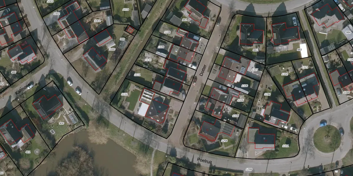 Het perceel waarop Dotter 8 staat heeft een oppervlakte van 332 m². Dit is een groot perceel. De perceeloppervlakte wordt geregistreerd door het Kadaster. Gedetailleerde informatie over de maten van dit perceel kunt u vinden in het rapport Kadastrale kaart met maatvoering van Dotter 8.