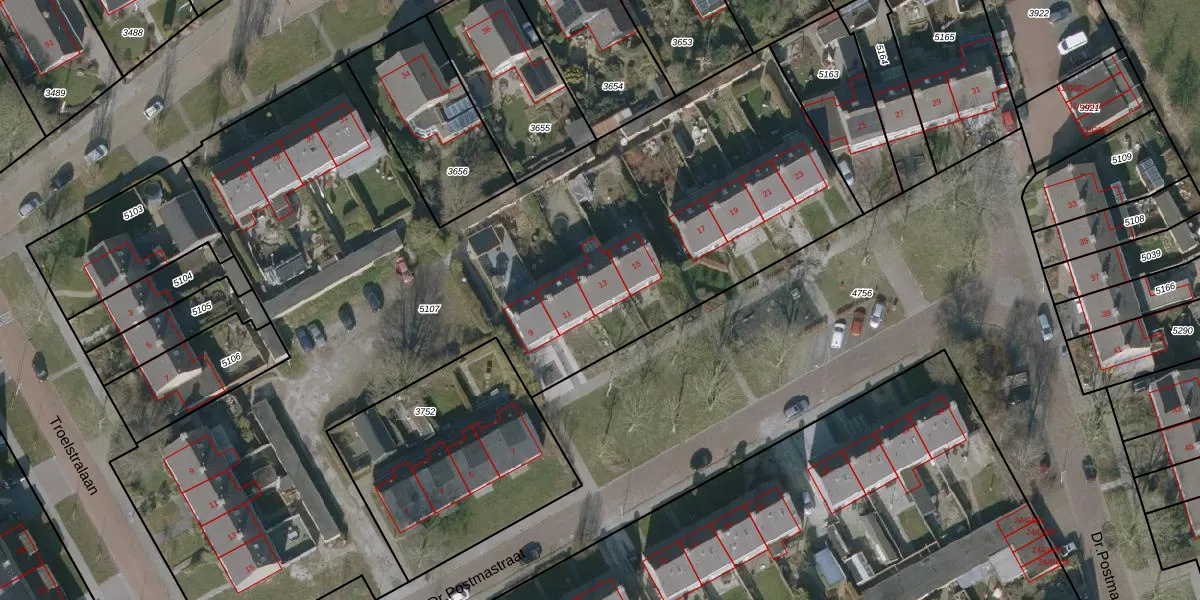 Het perceel waarop Dr.Postmastraat 13 staat heeft een oppervlakte van 4999 m². Dit is een zeer groot perceel. De perceeloppervlakte wordt geregistreerd door het Kadaster. Gedetailleerde informatie over de maten van dit perceel kunt u vinden in het rapport Kadastrale kaart met maatvoering van Dr.Postmastraat 13.