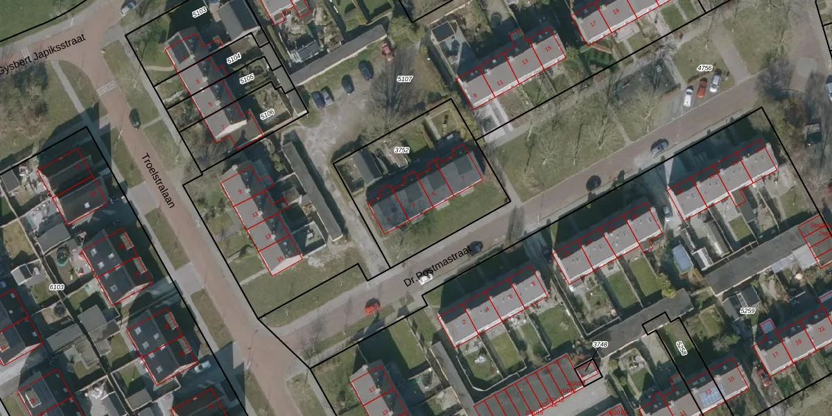 Dr.Postmastraat 3 is gelegen op kadastraal perceel BTP00A3752. Deze kadastrale aanduiding is uniek en wordt gebruikt door het Kadaster om eigendomsrechten en andere zakelijke rechten vast te leggen. Het perceel maakt onderdeel uit van de kadastrale gemeente Buitenpost.