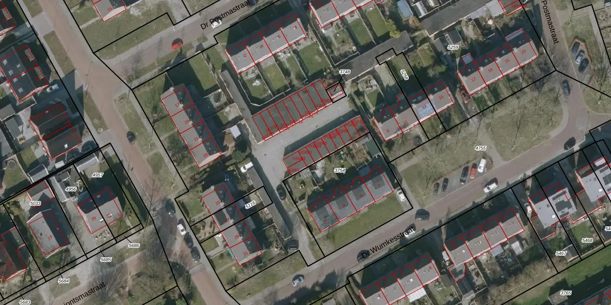 Het perceel waarop Dr.Wumkesstraat 1-G003 staat heeft een oppervlakte van 7655 m². Dit is een zeer groot perceel. De perceeloppervlakte wordt geregistreerd door het Kadaster. Gedetailleerde informatie over de maten van dit perceel kunt u vinden in het rapport Kadastrale kaart met maatvoering van Dr.Wumkesstraat 1-G003.
