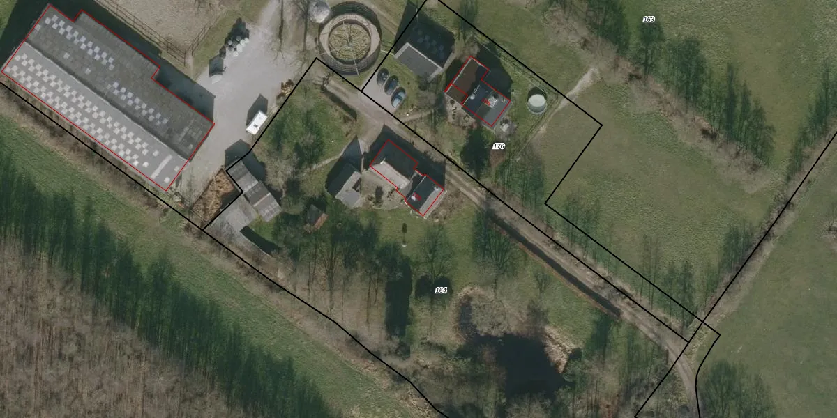 Het adres ligt op het perceel BTP00-E-164, dat zich in de kadastrale gemeente Buitenpost bevindt. De gemiddelde perceeloppervlakte in de kadastrale gemeente Buitenpost is 4624,1 m². Dit perceel is met zijn 5500 m² dus groter dan gemiddeld. De grootste perceeloppervlakte in de kadastrale gemeente is 25,0 ha. De kleinste oppervlakte bedraagt 1 m². Er zijn geen andere adressen aanwezig op het perceel. In de Basisregistratie Kadaster (BRK) werden de grenzen van het perceel geregistreerd op 16-06-2009.
