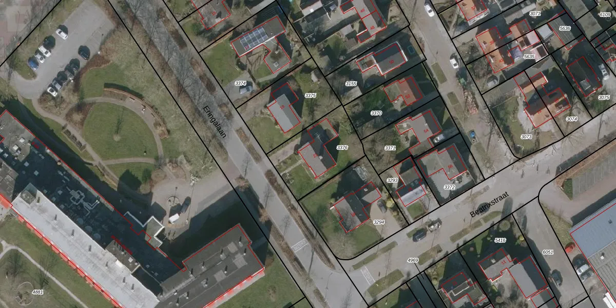 Gebruik de zoekbalk of klik op een perceel voor informatie over de adressen binnen dit perceel.