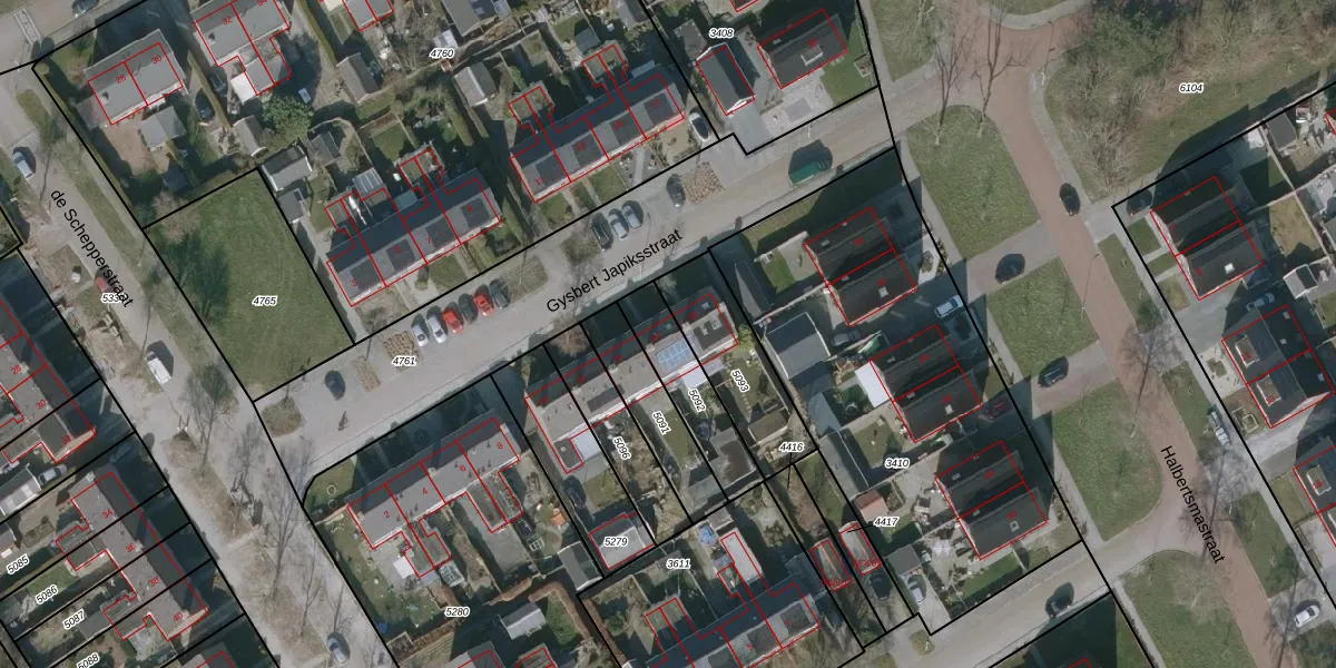 Gebruik de zoekbalk of klik op een perceel voor informatie over de adressen binnen dit perceel.