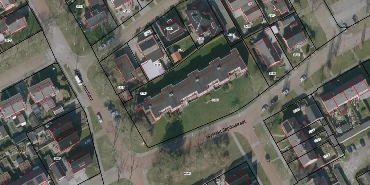 Het perceel waarop Gysbert Japiksstraat 25 staat heeft een oppervlakte van 2550 m². Dit is een zeer groot perceel. De perceeloppervlakte wordt geregistreerd door het Kadaster. Gedetailleerde informatie over de maten van dit perceel kunt u vinden in het rapport Kadastrale kaart met maatvoering van Gysbert Japiksstraat 25.