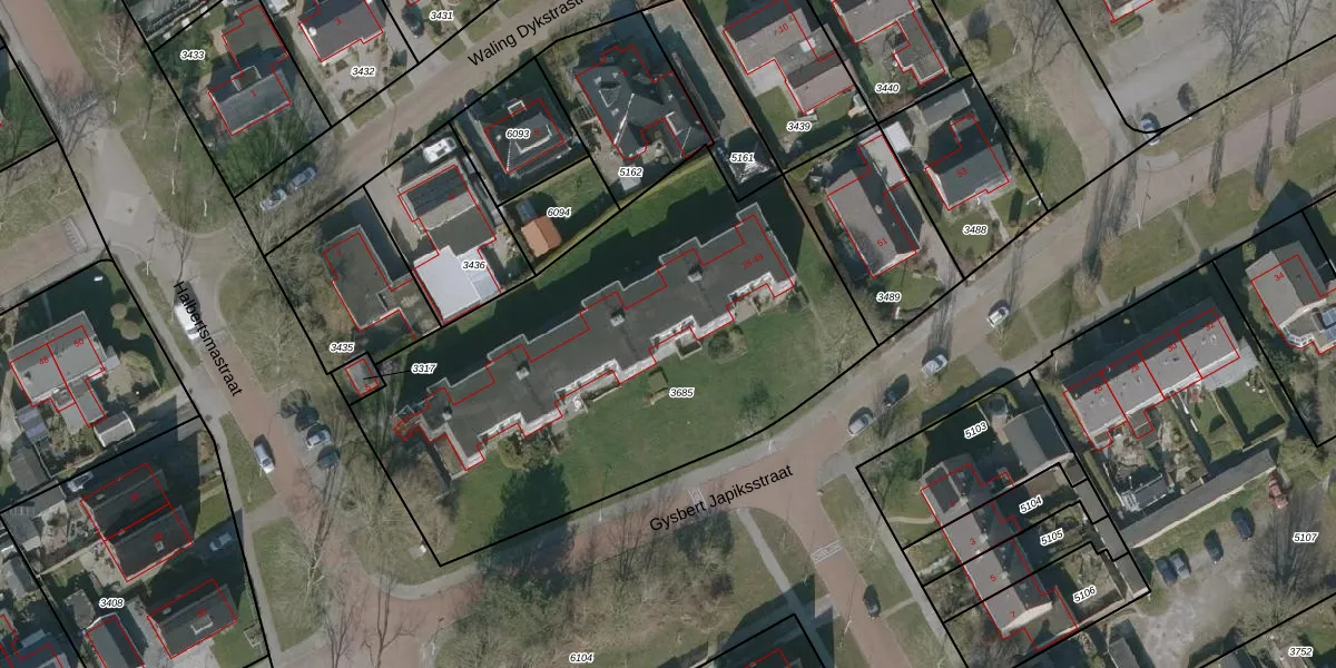 Het perceel waarop Gysbert Japiksstraat 45 staat heeft een oppervlakte van 2550 m². Dit is een zeer groot perceel. De perceeloppervlakte wordt geregistreerd door het Kadaster. Gedetailleerde informatie over de maten van dit perceel kunt u vinden in het rapport Kadastrale kaart met maatvoering van Gysbert Japiksstraat 45.