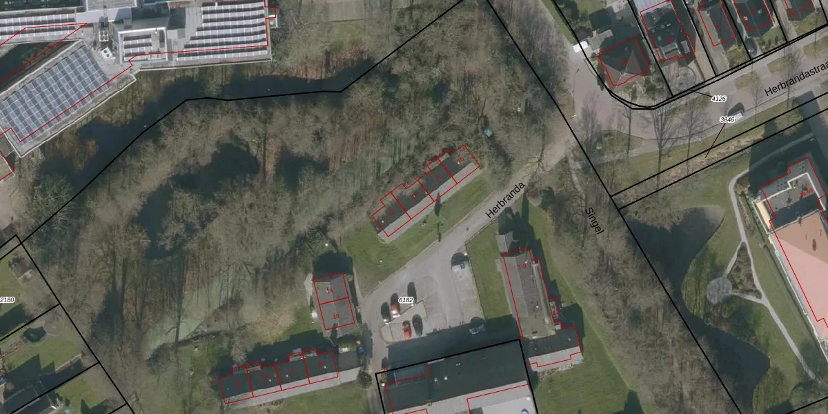 Het perceel waarop Herbranda 12 staat heeft een oppervlakte van 1,7 ha. Dit is een zeer groot perceel. De perceeloppervlakte wordt geregistreerd door het Kadaster. Gedetailleerde informatie over de maten van dit perceel kunt u vinden in het rapport Kadastrale kaart met maatvoering van Herbranda 12.