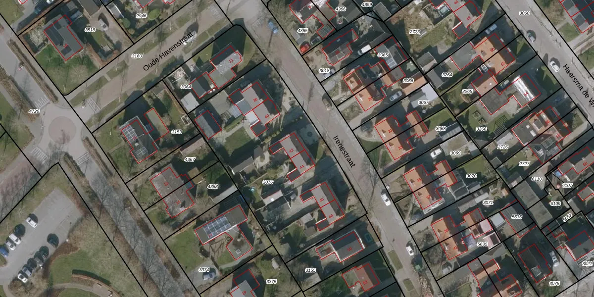 Het perceel waarop Irenestraat 42 staat heeft een oppervlakte van 1990 m². Dit is een zeer groot perceel. De perceeloppervlakte wordt geregistreerd door het Kadaster. Gedetailleerde informatie over de maten van dit perceel kunt u vinden in het rapport Kadastrale kaart met maatvoering van Irenestraat 42.