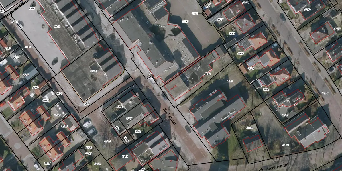 Het perceel waarop Kerkstraat 49 staat heeft een oppervlakte van 587 m². Dit is een groot perceel. De perceeloppervlakte wordt geregistreerd door het Kadaster. Gedetailleerde informatie over de maten van dit perceel kunt u vinden in het rapport Kadastrale kaart met maatvoering van Kerkstraat 49.