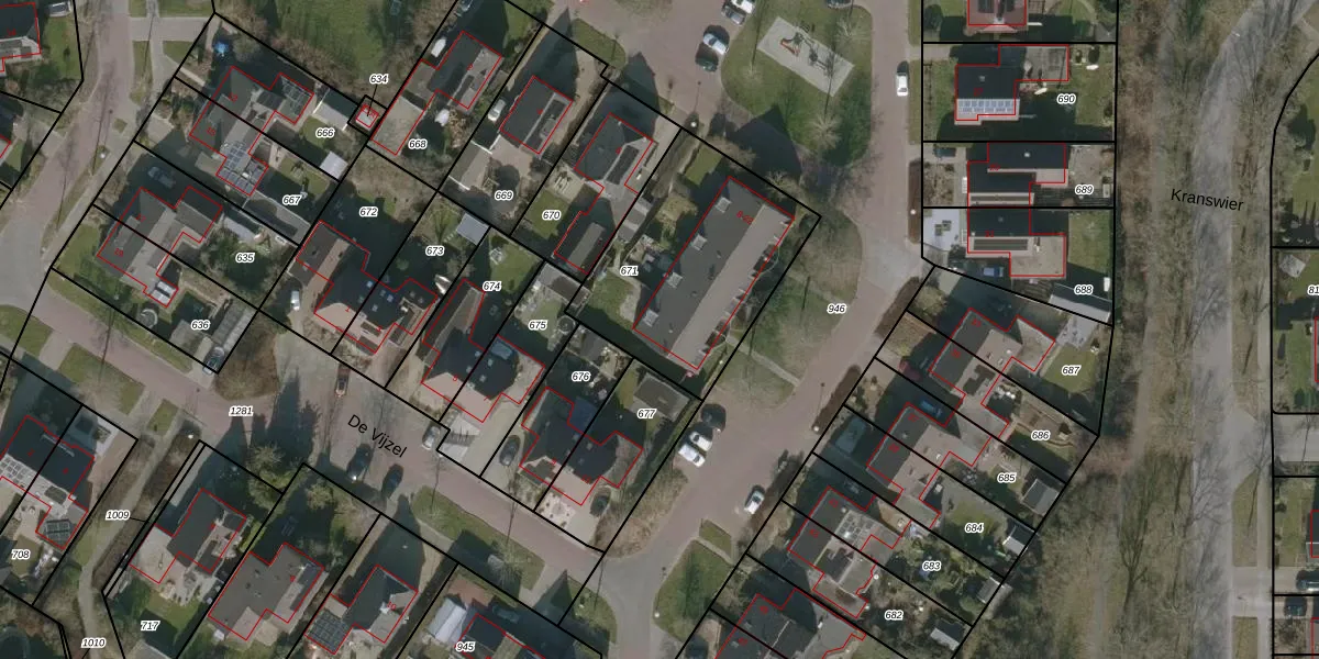Het perceel waarop Kruirad 22 staat heeft een oppervlakte van 830 m². Dit is een groot perceel. De perceeloppervlakte wordt geregistreerd door het Kadaster. Gedetailleerde informatie over de maten van dit perceel kunt u vinden in het rapport Kadastrale kaart met maatvoering van Kruirad 22.