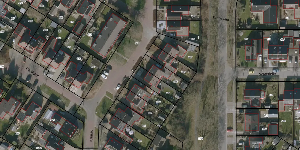 Het perceel waarop Kruirad 39 staat heeft een oppervlakte van 302 m². Dit is een groot perceel. De perceeloppervlakte wordt geregistreerd door het Kadaster. Gedetailleerde informatie over de maten van dit perceel kunt u vinden in het rapport Kadastrale kaart met maatvoering van Kruirad 39.