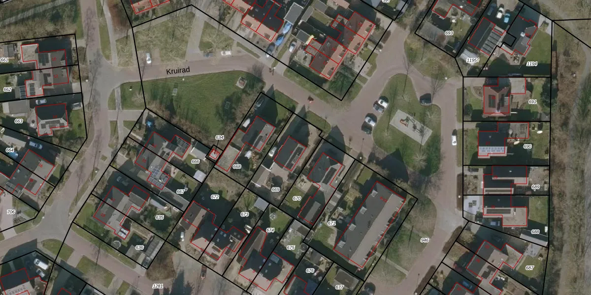 Gebruik de zoekbalk of klik op een perceel voor informatie over de adressen binnen dit perceel.