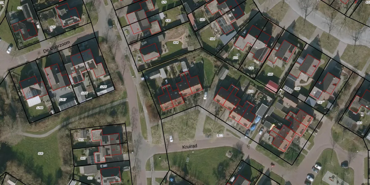 Het perceel waarop Kruirad 5 staat heeft een oppervlakte van 2813 m². Dit is een zeer groot perceel. De perceeloppervlakte wordt geregistreerd door het Kadaster. Gedetailleerde informatie over de maten van dit perceel kunt u vinden in het rapport Kadastrale kaart met maatvoering van Kruirad 5.